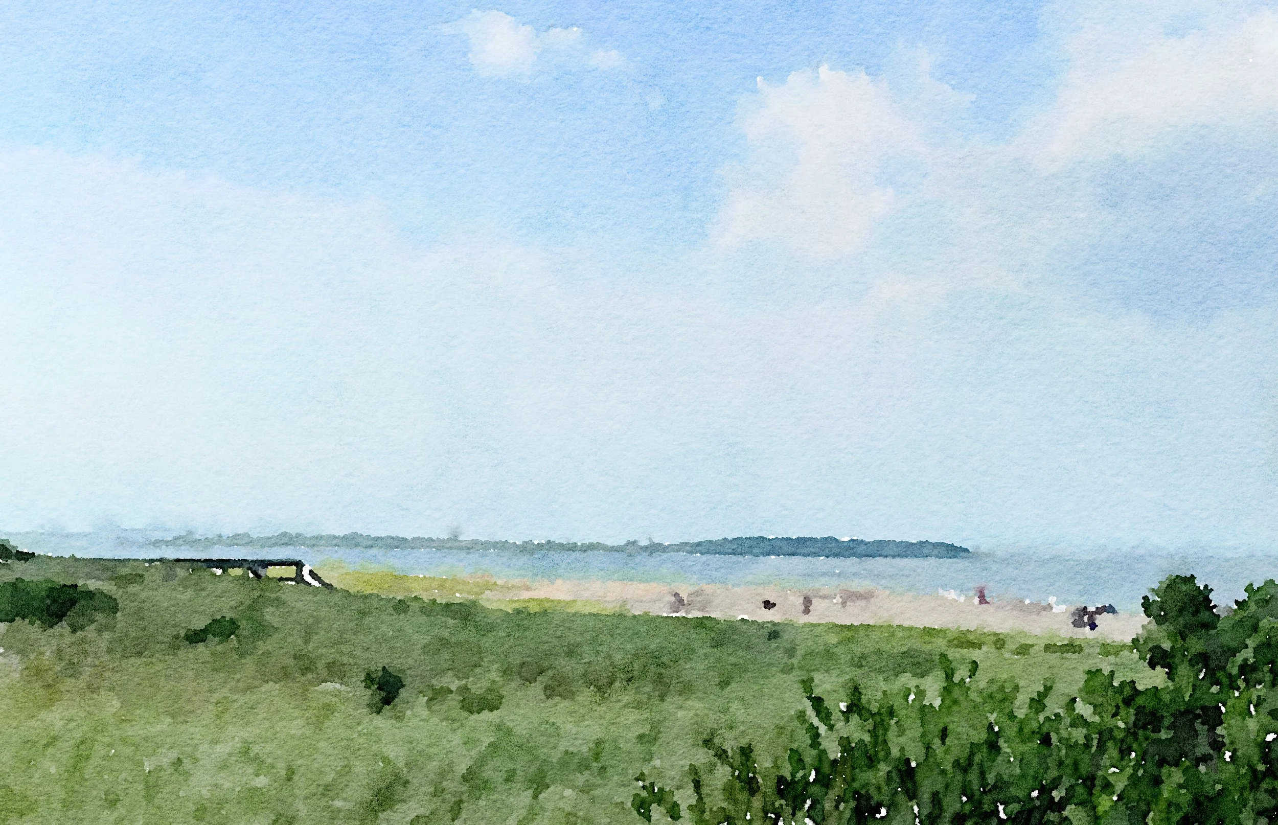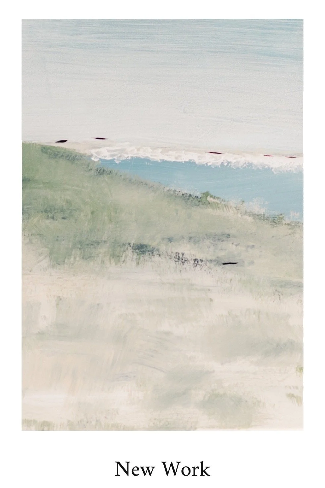 16x20 acrylic on canvas “Martha’s Vineyard ” The Ocean CallsCool blues and greens, sailboats, low tides: a collection inspired by the rocky and sandy coastline of New England. Crane Beach, “A summer’s day”. Mixed Media View Work “Feet First” 16x20